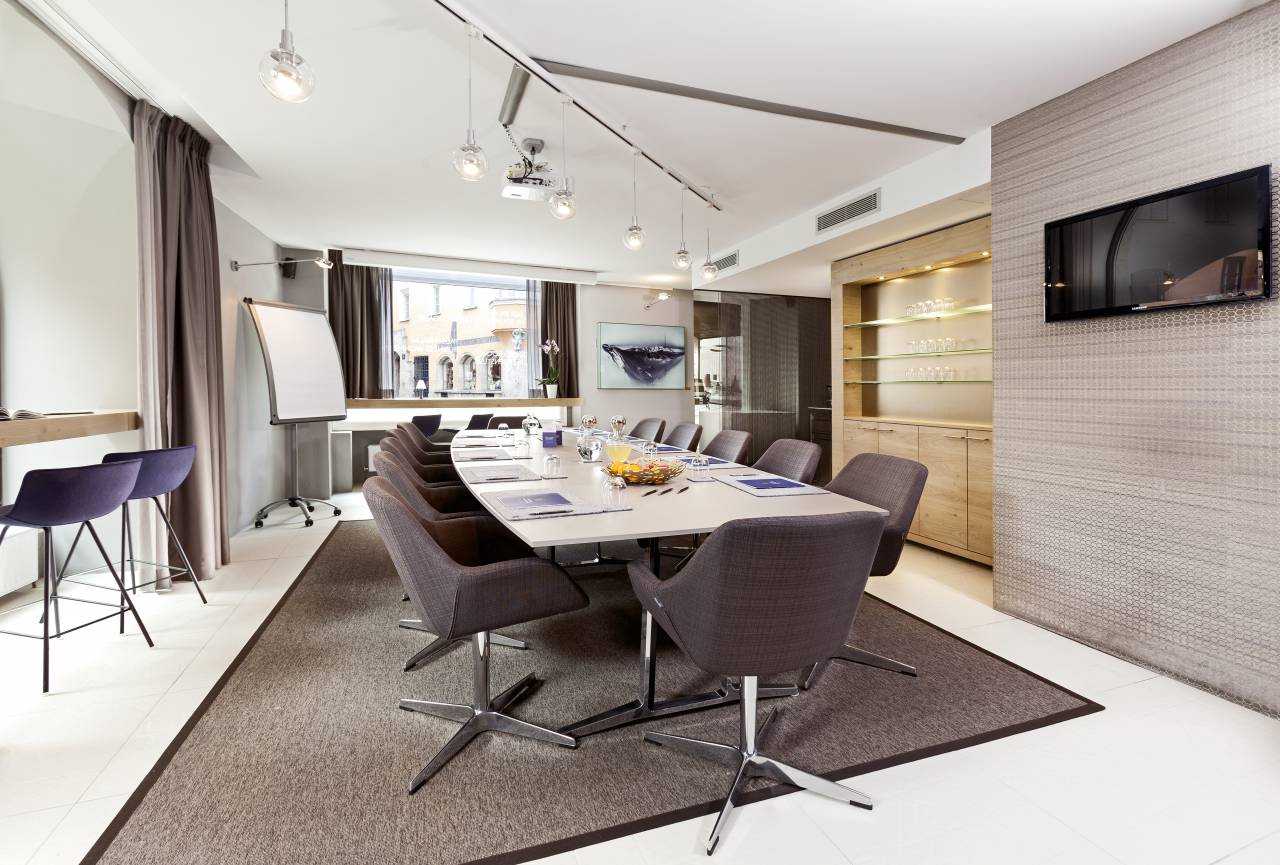 This room is designed as a multi-purpose room and offers the right equipment for various events. @ Seilergasse | Kiebachgasse consists of 2 areas: A fireplace lounge with a bench around a cozy effet fireplace and a 45m² area, which can be equipped for your needs with boardroom, reception, living room or cinema seating. The highlight of this location @ Seilergasse | Kiebachgasse is the location, directly at the “Vier Viecher Eck” you look at ground level on the streets of the old town of Innsbruck. Nowhere else can you find the lively old town life and function room as connected as here. Dimming and visual protection devices are a matter of course and will ensure discretion for your meeting.